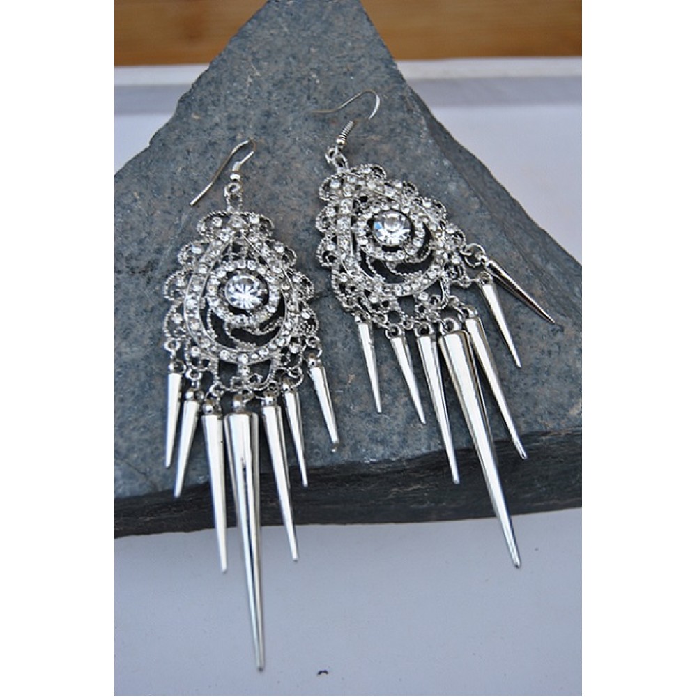 Beautifully designed in a drop pattern with crystals and a delicate border these earrings are stunningly attractive, These gorgeous earrings are plated with an attractive rodium polish. A very attractive design, eye catching and very striking they are a sure show stealer. Indowestern they are great to pair with western and Indian outfits.