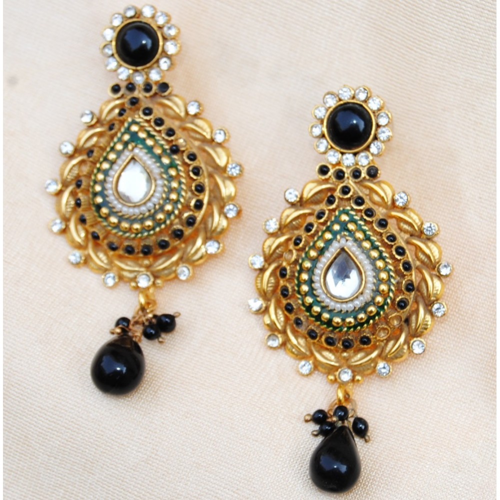 Exclusive designer polki earrings with a gold plated copper base and high quality pearls. A rich and royal look.