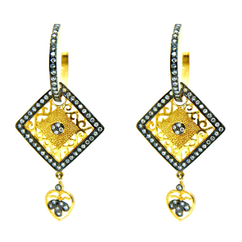 Heavily influenced by geometry, these elongated hoops with filigree work will ensure you stand out.