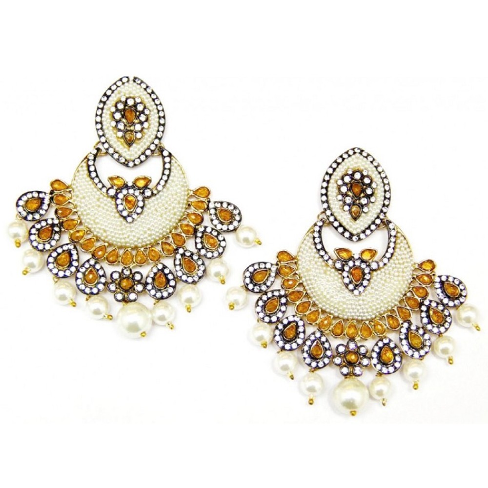 Product Information : Stunning and absolutely riveting. An Orne Exclusive. These Chand Bali inspired chandelier styled earrings will make you the highlight of the evening. Great for wedding wear, these elaborate earrings are available in 5 colors. Please note that these are rather heavy and not advisable for those who are not accustomed to wearing heavy earrings. Please refer to the size in the specifications tab before ordering.