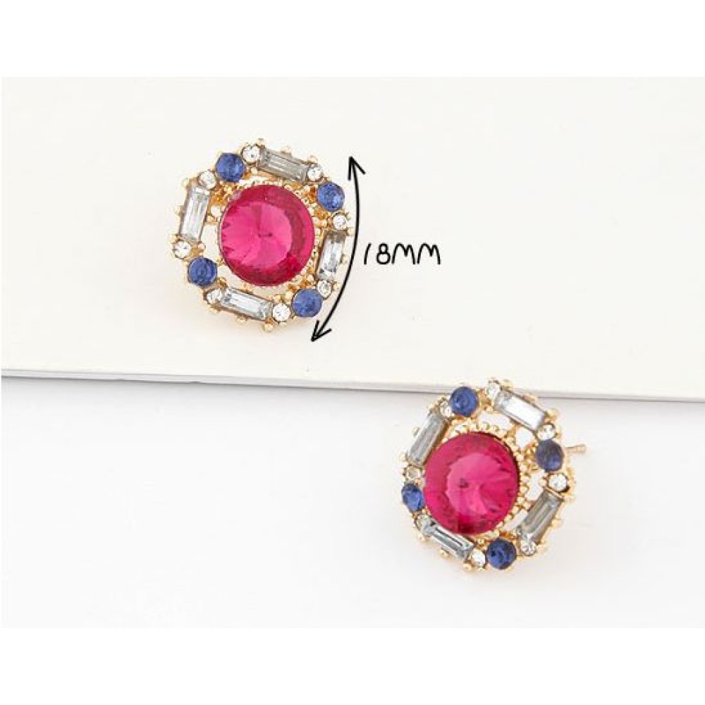 Designer stud earrings with a gorgeous plum centre stone. Surrounded by bling, these never fail to catch the eye.