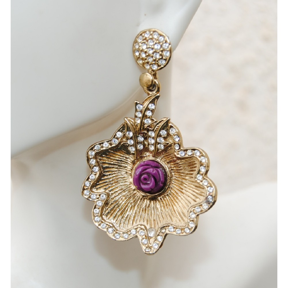 Delicate pink roses centered in these gorgeous gold earrings that are then outlined with diamonds. Gorgeous earrings for gorgeous girls !