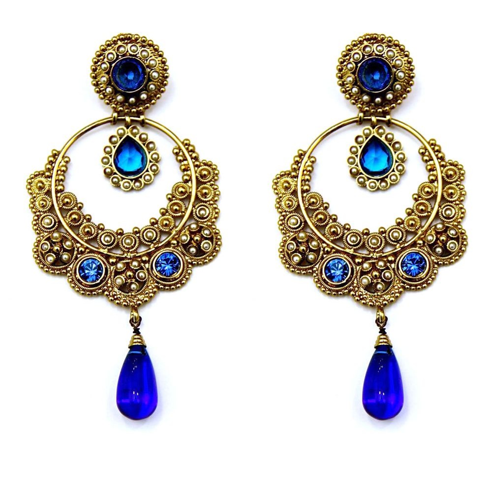 Gorgeous dangle earrings. Lightweight and gorgeous to the hilt. A much sought after combination of royal blue and gold with intricate metalwork.