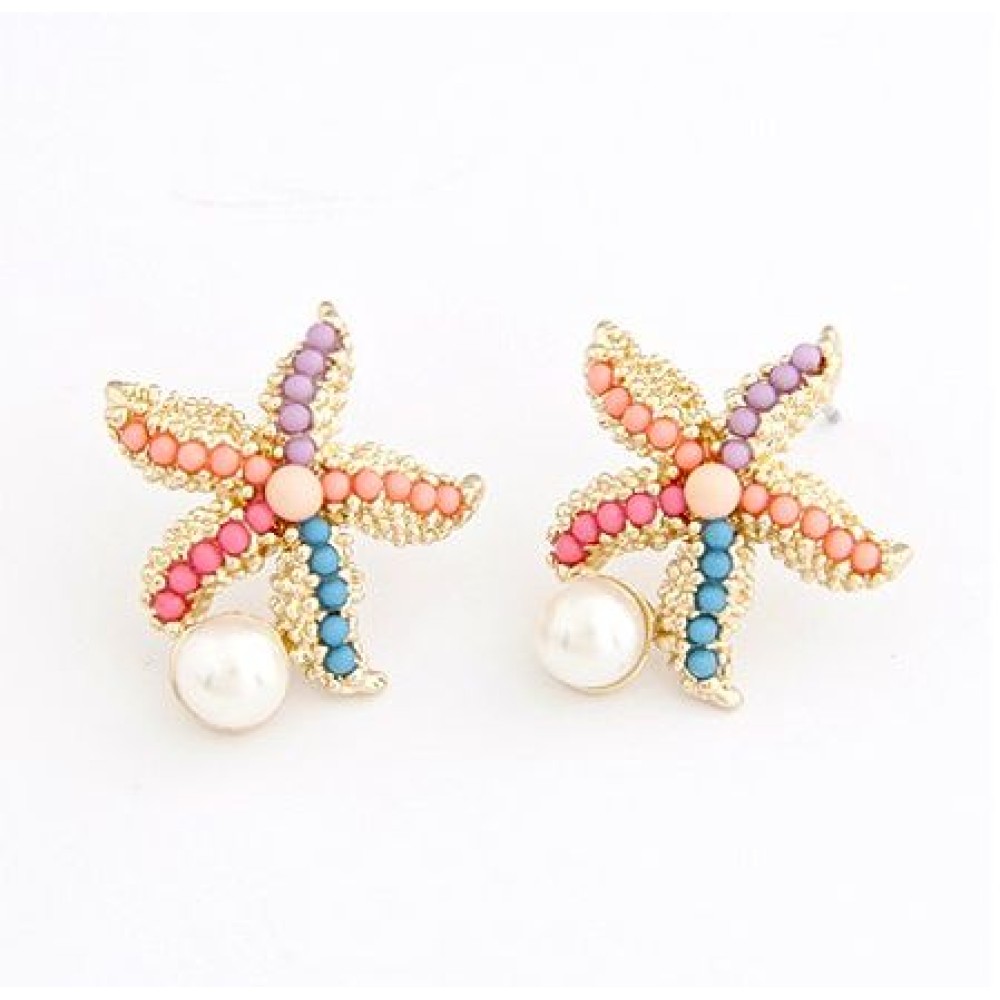 Magnificent multicolor starfishes plated with gold hold the treasure of the ocean. A perfect tribute to nature and all things beautiful.